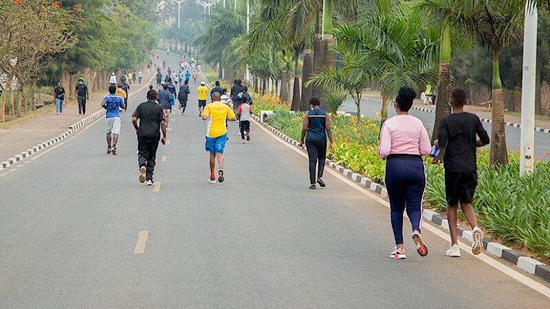 In different areas of Three Districts made City Kigali, There was a remarkably big turn up at the mass sport as people were seen either walking, running, stretching or cycling across the streets. A two-meter-distance between a person and another was also respected.
